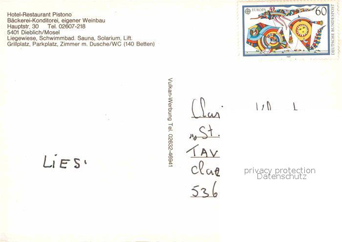 72865229 Dieblich Hotel Pistono Hallenbad Tanz postalisch nicht gelaufen Erhaltung siehe scans [FriedD77] KatCode: 11110007137207