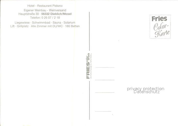 72576009 Dieblich Hotel Restaurant Pistono postalisch nicht gelaufen Erhaltung siehe scans [LiesaD40] KatCode: 11110007137207