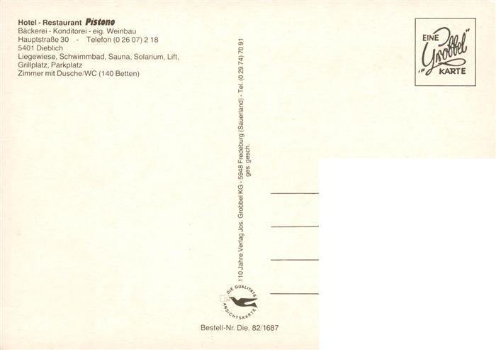 73902905 Dieblich Mosel Hotel Restaurant Pistone Gaststube postalisch nicht gelaufen Erhaltung siehe scans [WerneD78] Wern Katcode 11110007137207