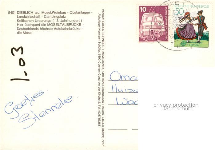 73670246 alte Postkarte Dieblich Mosel Panorama postalisch gelaufen Erhaltung siehe scans [WerneD78] KatCode: 11110007137207
