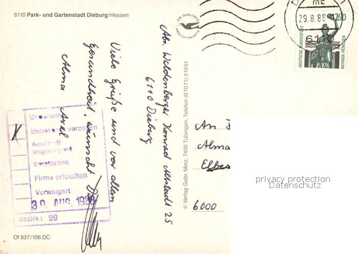 73226415 alte Postkarte Dieburg Die Gaassbeck an der Dieborjer Rothausuhr postalisch gelaufen Erhaltung siehe scans [WerneD78] KatCode: 11110006432004