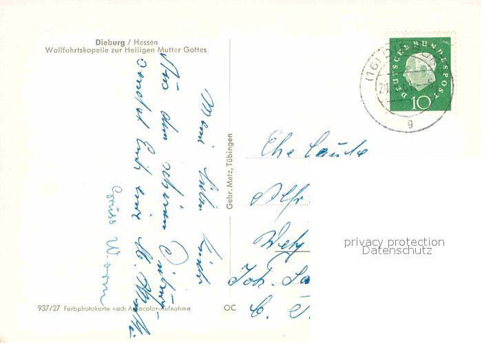 72751650 alte Postkarte Dieburg Wallfahrtskapelle postalisch gelaufen Erhaltung siehe scans [AndreD76] KatCode: 11110006432004