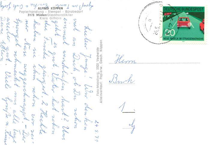 73974944 alte Postkarte Dieckhorst Mueden Aller Altes Bauernhaus Allerpartie Gasthaus zum Dorfkrug Papierwaren Koeppen Sparkasse Mueden Dieckhorst postalisch gelaufen Erhaltung siehe scans [WerneD78] KatCode: 11110003151018