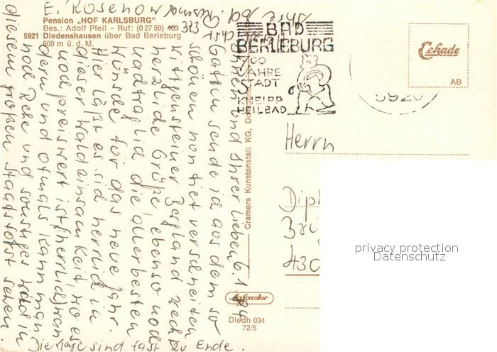 73641145 alte Postkarte Diedenshausen Wittgenstein Pension Karlsburg im Wittgensteiner Bergland Gastraeume Panorama postalisch gelaufen Erhaltung siehe scans [WerneD78] KatCode: 11110005970004