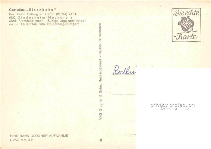 72777750 Diedesheim Neckarelz Restaurant Eisenbahn postalisch nicht gelaufen Erhaltung siehe scans [LiesaD40] KatCode: 11110008225058