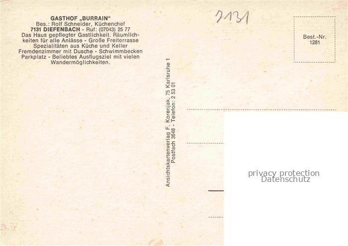 74054261 Diefenbach Sternenfels Enzkreis BW Gasthof Burrain postalisch nicht gelaufen Erhaltung siehe scans [FriedD77] KatCode: 11110008236061