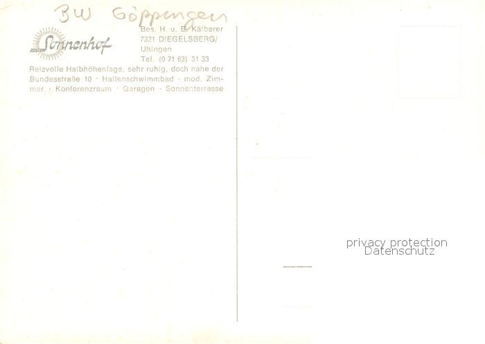 73645060 Diegelsberg Gaestehaus Pension Sonnenhof postalisch nicht gelaufen Erhaltung siehe scans [FriedD77] KatCode: 11110008117051