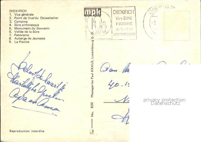 alte Postkarte Diekirch Auberge de Jeunesse Monument du Souvenir postalisch gelaufen Erhaltung siehe scans