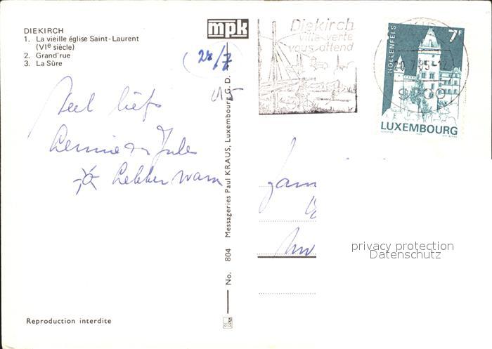 alte Postkarte Diekirch Eglise Saint-Laurent Grand rue La Sure postalisch gelaufen Erhaltung siehe scans
