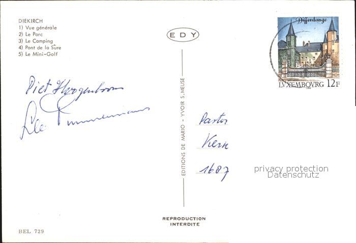 alte Postkarte Diekirch Gesamtansicht Park Campingplatz Minigolf postalisch gelaufen Erhaltung siehe scans