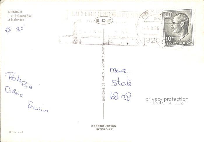 alte Postkarte Diekirch Grand Rue Esplanade postalisch gelaufen Erhaltung siehe scans