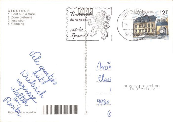 alte Postkarte Diekirch Pont sur la Sure Zone pietonne Ieselsbur Camping postalisch gelaufen Erhaltung siehe scans