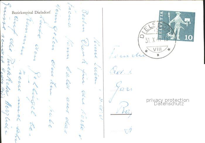 11655697 alte Postkarte Dielsdorf Bezirksspital postalisch gelaufen Erhaltung siehe scans KatCode: 11470260875202