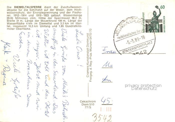 73322398 alte Postkarte Diemelsee Diemeltalsperre Fliegeraufnahme postalisch gelaufen Erhaltung siehe scans [FriedD77] KatCode: 11110006635007
