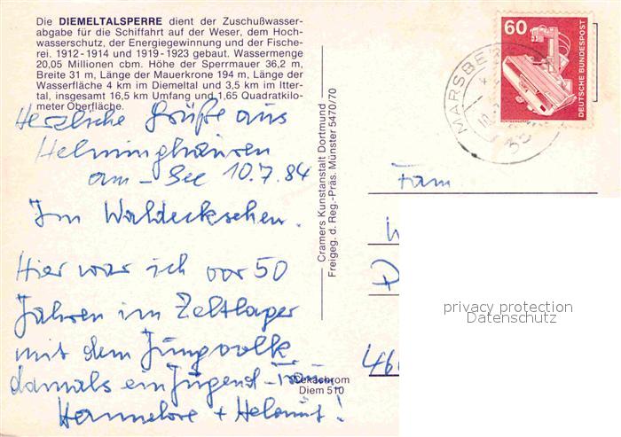 72725856 alte Postkarte Diemelsee Diemeltalsperre Fliegeraufnahme postalisch gelaufen Erhaltung siehe scans [WerneD78] KatCode: 11110006635007
