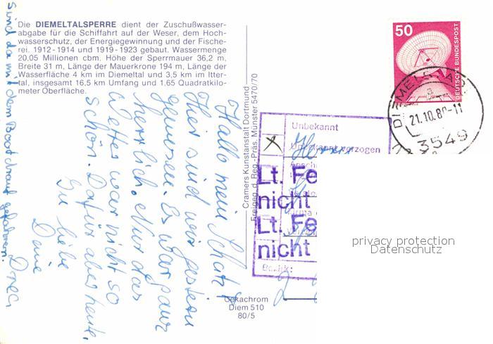 72697434 alte Postkarte Diemelsee Diemeltalsperre Fliegeraufnahme postalisch gelaufen Erhaltung siehe scans [WerneD78] KatCode: 11110006635007