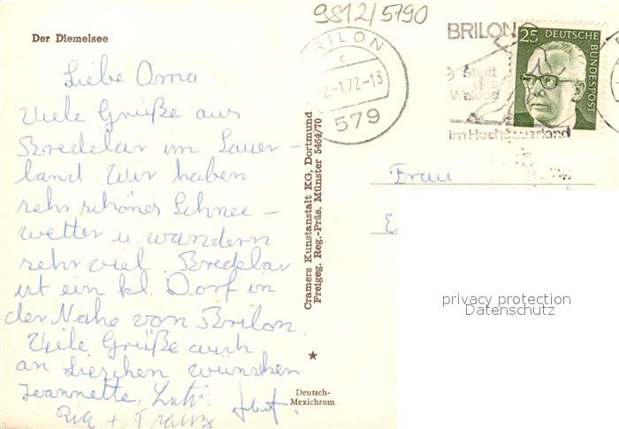 73166506 alte Postkarte Diemelsee Fliegeraufnahme postalisch gelaufen Erhaltung siehe scans [FriedD77] KatCode: 11110006635007