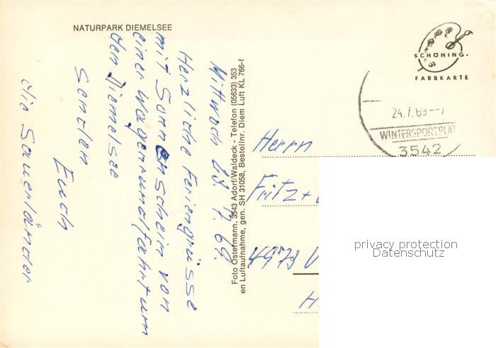 73754018 alte Postkarte Diemelsee Naturpark Fliegeraufnahme postalisch gelaufen Erhaltung siehe scans [WerneD78] KatCode: 11110006635007
