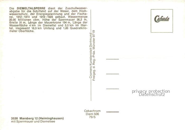 74039654 Diemeltalsperre Diemelsee Waldeck-Frankenberg Hessen Fliegeraufnahme postalisch nicht gelaufen Erhaltung siehe scans [WerneD78] KatCode: 11110006635007