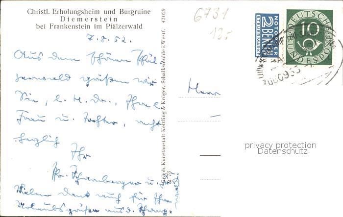 72096857 alte Postkarte Diemerstein Pfalz Christl Erholungsheim und Burgruine Diemerstein postalisch gelaufen Erhaltung siehe scans KatCode: 11110007335010