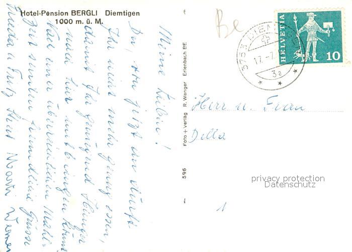 13252873 alte Postkarte Diemtigen Hotel Bergli postalisch gelaufen Erhaltung siehe scans [NatalD47] KatCode: 11470060205536