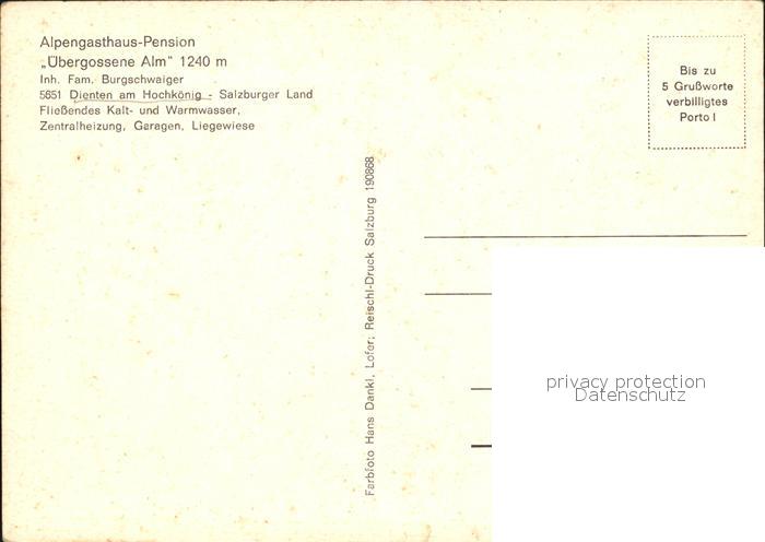 72485257 Dienten Hochkoenig Alpengasthaus uebergossene Alm postalisch nicht gelaufen Erhaltung siehe scans KatCode: 11390322050603