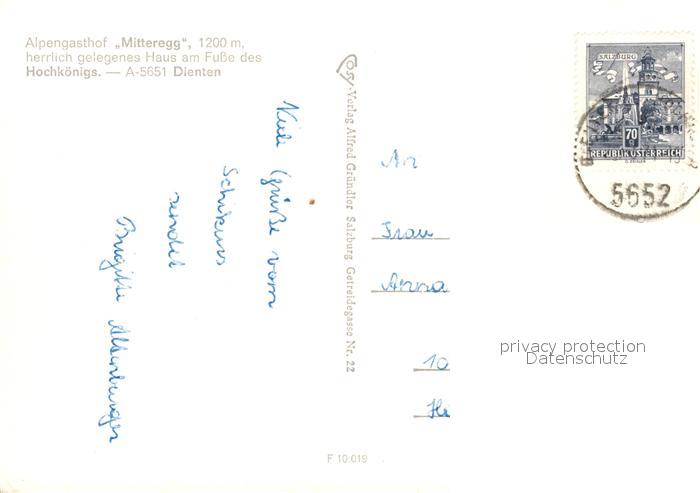 73165110 alte Postkarte Dienten Hochkoenig Alpengasthof Mitteregg postalisch gelaufen Erhaltung siehe scans [PaolaD17] KatCode: 11390322050603