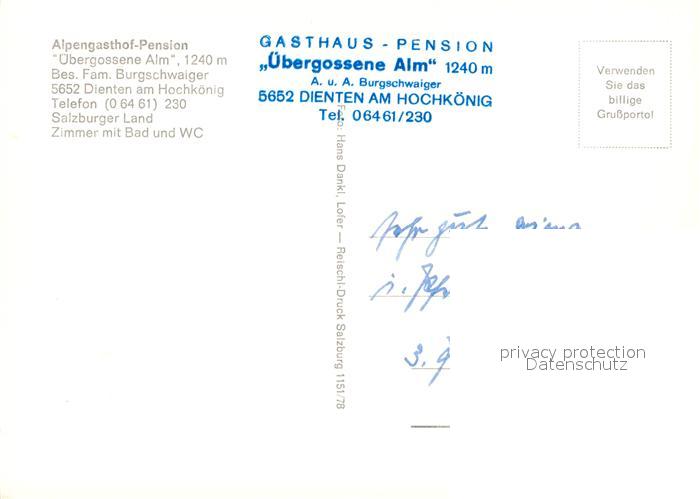 73518961 Dienten Hochkoenig Alpengasthof Pension uebergossene Alm postalisch nicht gelaufen Erhaltung siehe scans [FriedD77] KatCode: 11390322050603