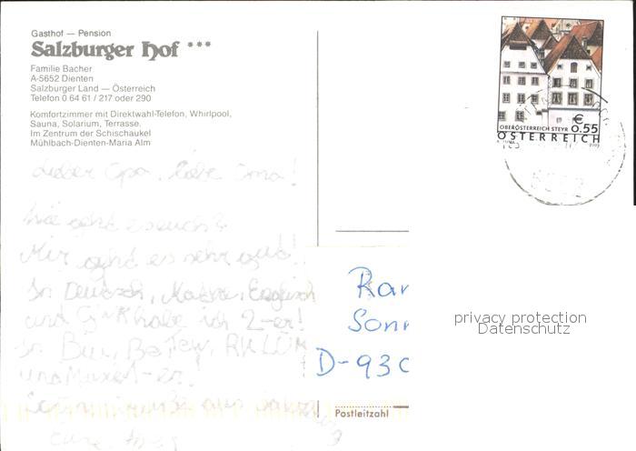 71986307 alte Postkarte Dienten Hochkoenig Gasthof Pension Salzburger Hof postalisch gelaufen Erhaltung siehe scans KatCode: 11390322050603