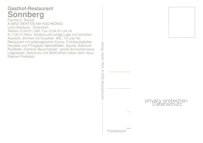 73588126 Dienten Hochkoenig Gasthof Restaurant Sonnberg Schischule Huette Wintersportplatz Alpen postalisch nicht gelaufen Erhaltung siehe scans [FriedD77] KatCode: 11390322050603