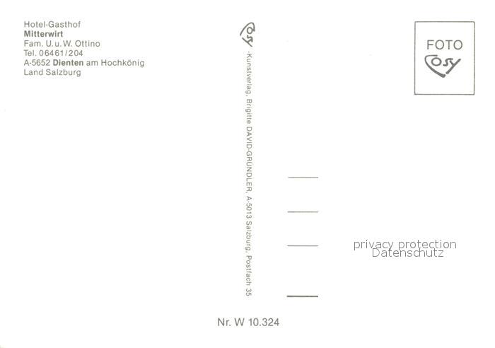 72959699 Dienten Hochkoenig Hotel Mitterwirt postalisch nicht gelaufen Erhaltung siehe scans [NatalD47] KatCode: 11390322050603