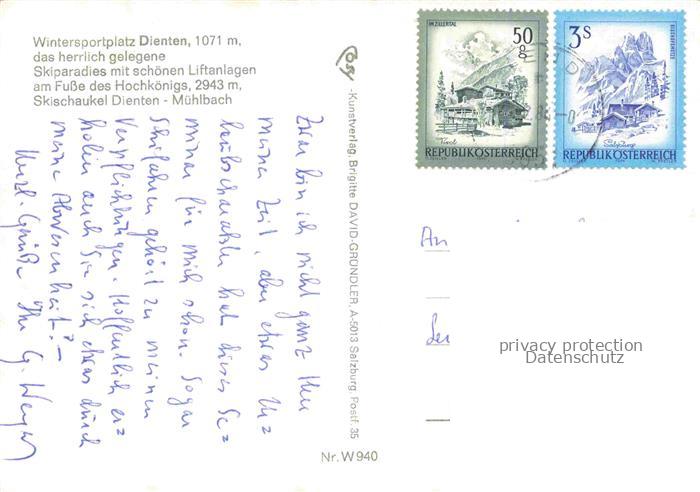 74138860 alte Postkarte Dienten Hochkoenig Pinzgau-Pongau AT Ortspartie postalisch gelaufen Erhaltung siehe scans [WerneD78] KatCode: 11390322050603