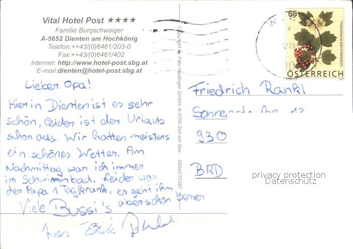 71986309 alte Postkarte Dienten Hochkoenig Vital Hotel Post postalisch gelaufen Erhaltung siehe scans KatCode: 11390322050603