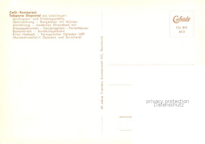 72942572 Diepental Caf? Restaurant Talsperre postalisch nicht gelaufen Erhaltung siehe scans [LiesaD40] KatCode: 11110005378016