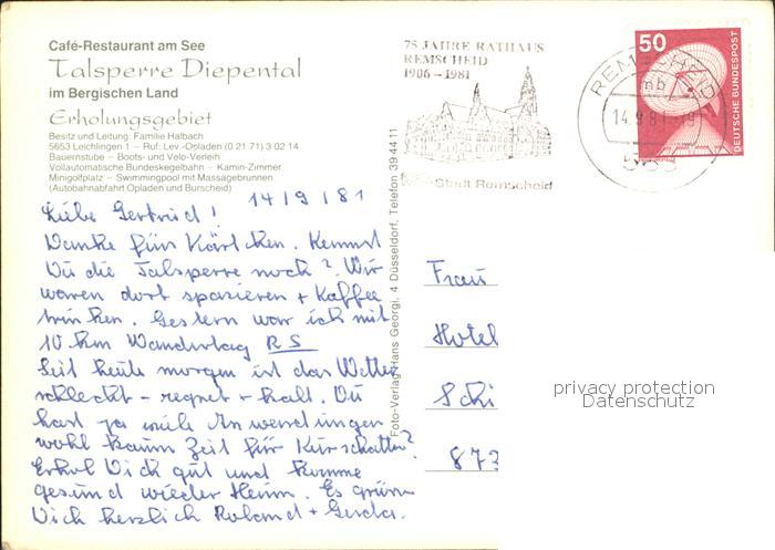 72032777 alte Postkarte Diepental Cafe Restaurant am See Talsperre postalisch gelaufen Erhaltung siehe scans KatCode: 11110005378016