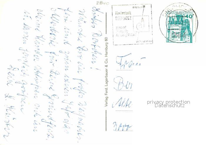 72743701 alte Postkarte Diepholz Ortspartien postalisch gelaufen Erhaltung siehe scans [LiesaD40] KatCode: 11110003251012