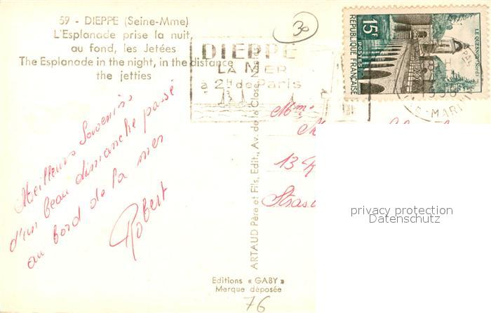 13491246 carte postale Dieppe 76 Esplanade prise la nuit au fond les Jetées postalisch gelaufen Erhaltung siehe scans [FriedD77] KatCode: 11170076176217