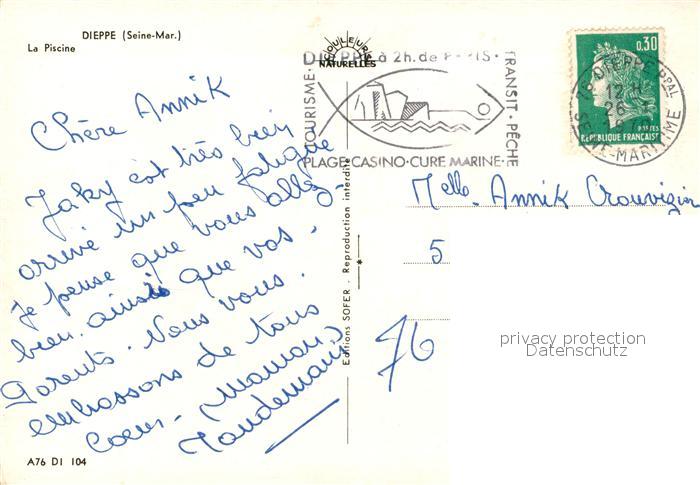 13586315 Dieppe 76 Piscine Plage vue aérienne postalisch gelaufen Erhaltung siehe scans [FriedD77] carte postale Frie Katcode 11170076176217