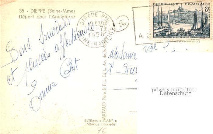 13491234 carte postale Dieppe 76 Vapeur Départ pour l’Angleterre le phare postalisch gelaufen Erhaltung siehe scans [FriedD77] KatCode: 11170076176217