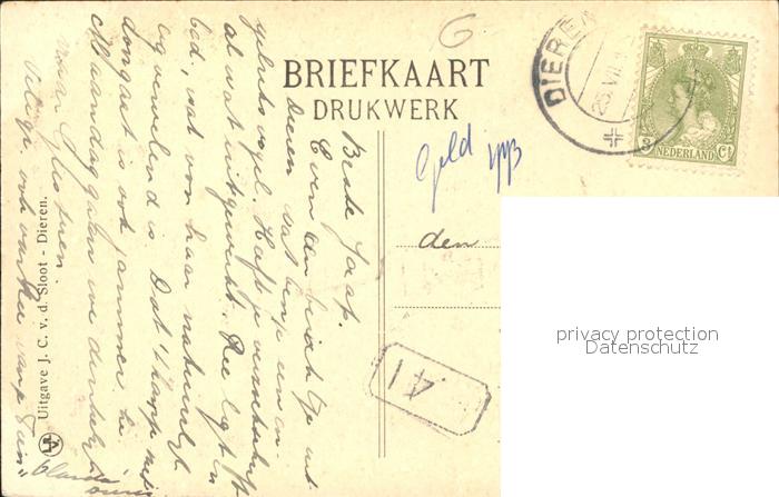 old postcard Dieren Schutsluis postalisch gelaufen Erhaltung siehe scans