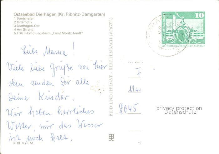 72357330 alte Postkarte Dierhagen Ostseebad Bootshafen Strand FDGB-Erholungsheim Ernst Moritz Arndt postalisch gelaufen Erhaltung siehe scans KatCode: 11110013057022