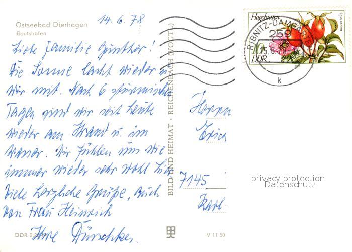 73135629 alte Postkarte Dierhagen Ostseebad Bootshafen postalisch gelaufen Erhaltung siehe scans [FriedD77] KatCode: 11110013057022