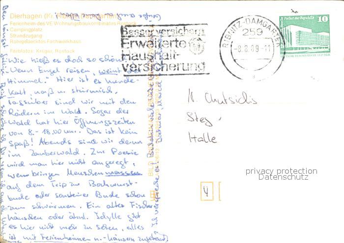 72306640 alte Postkarte Dierhagen Ostseebad Ferienheim des VEB Rostock Campingplatz Strandzugang Rohrgedecktes Fachwerkhaus postalisch gelaufen Erhaltung siehe scans KatCode: 11110013057022