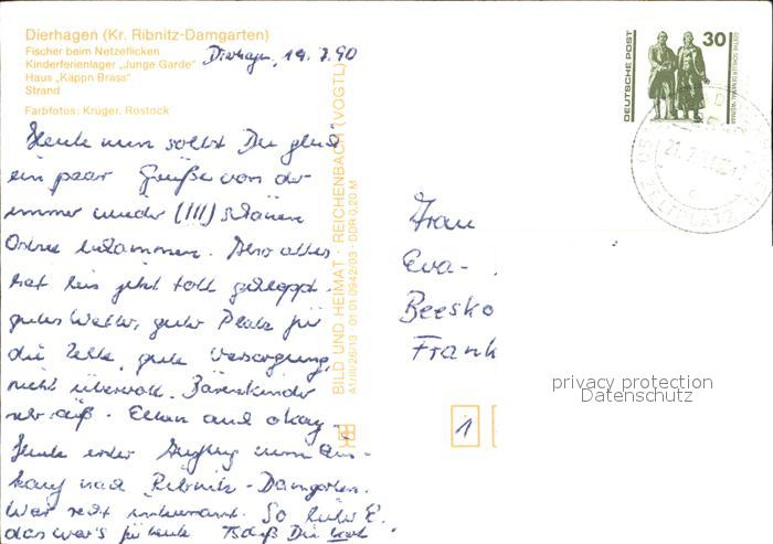 72114028 alte Postkarte Dierhagen Ostseebad Fischer beim Netzeflicken Kinderferienlager Haus Kaeppn Brass Strand postalisch gelaufen Erhaltung siehe scans KatCode: 11110013057022