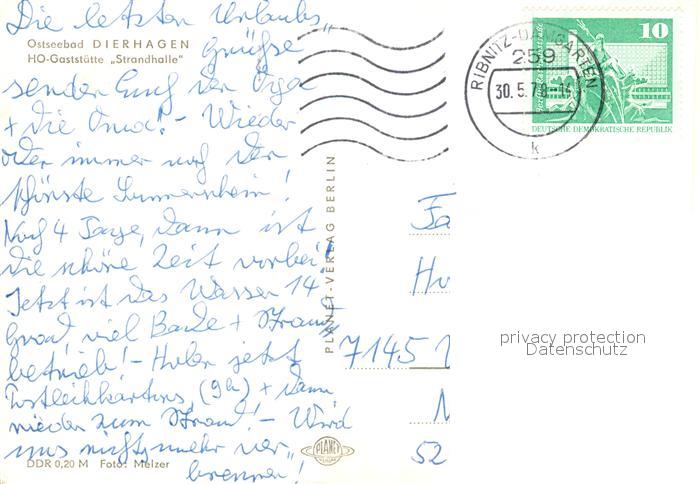 73135628 alte Postkarte Dierhagen Ostseebad HO Gaststaette Strandhalle postalisch gelaufen Erhaltung siehe scans [FriedD77] KatCode: 11110013057022