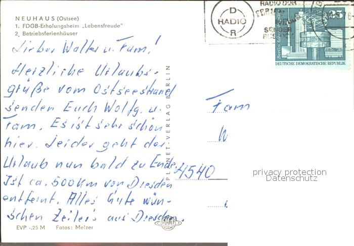 71907091 alte Postkarte Dierhagen Ostseebad OT Neuhaus FDGB Erholungsheim Lebensfreude Betriebsferienhaeuser Strand postalisch gelaufen KatCode: 11110013057022