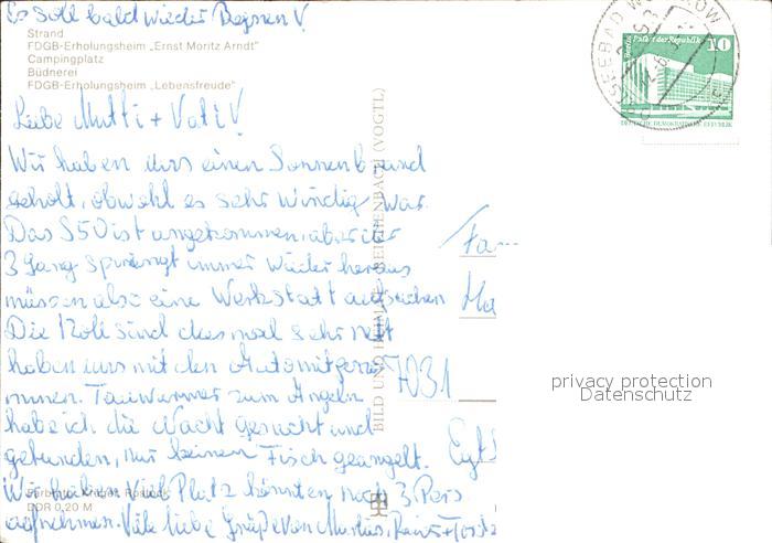 72126024 alte Postkarte Dierhagen Ostseebad Strand Erholungsheime Ernst-Moritz-Arndt und Lebnsfreude Camping postalisch gelaufen Erhaltung siehe scans KatCode: 11110013057022