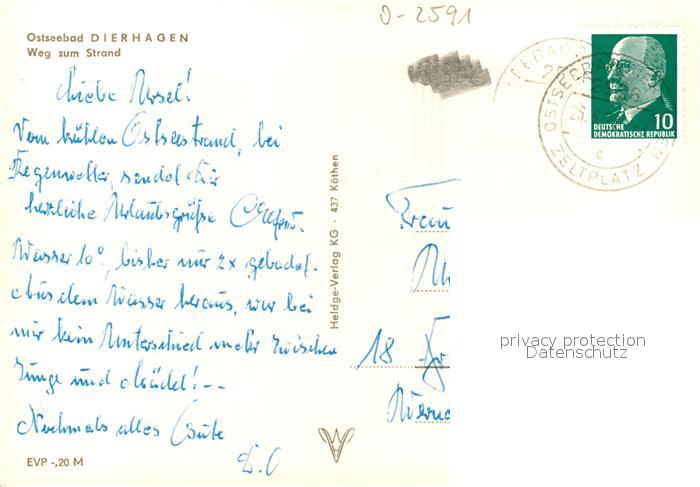 73037398 alte Postkarte Dierhagen Ostseebad Weg zum Strand postalisch gelaufen Erhaltung siehe scans [KathaD81] KatCode: 11110013057022