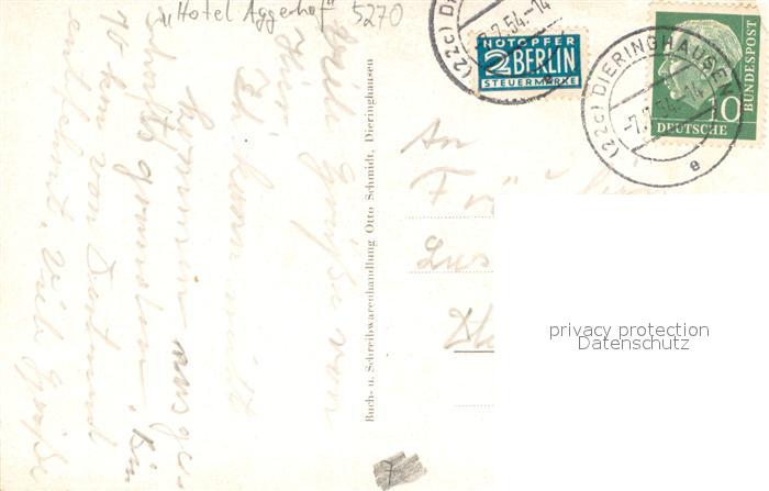 73706049 alte Postkarte Dieringhausen Aggerpartie Hotel-Aggerhof postalisch gelaufen Erhaltung siehe scans [LiesaD40] KatCode: 11110005374012