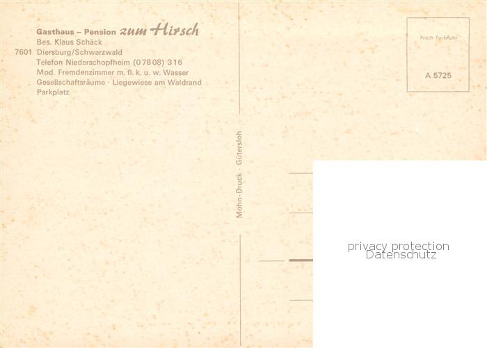 73813894 Diersburg Gasthaus Pension zum Hirsch postalisch nicht gelaufen Erhaltung siehe scans [WerneD78] KatCode: 11110008317047